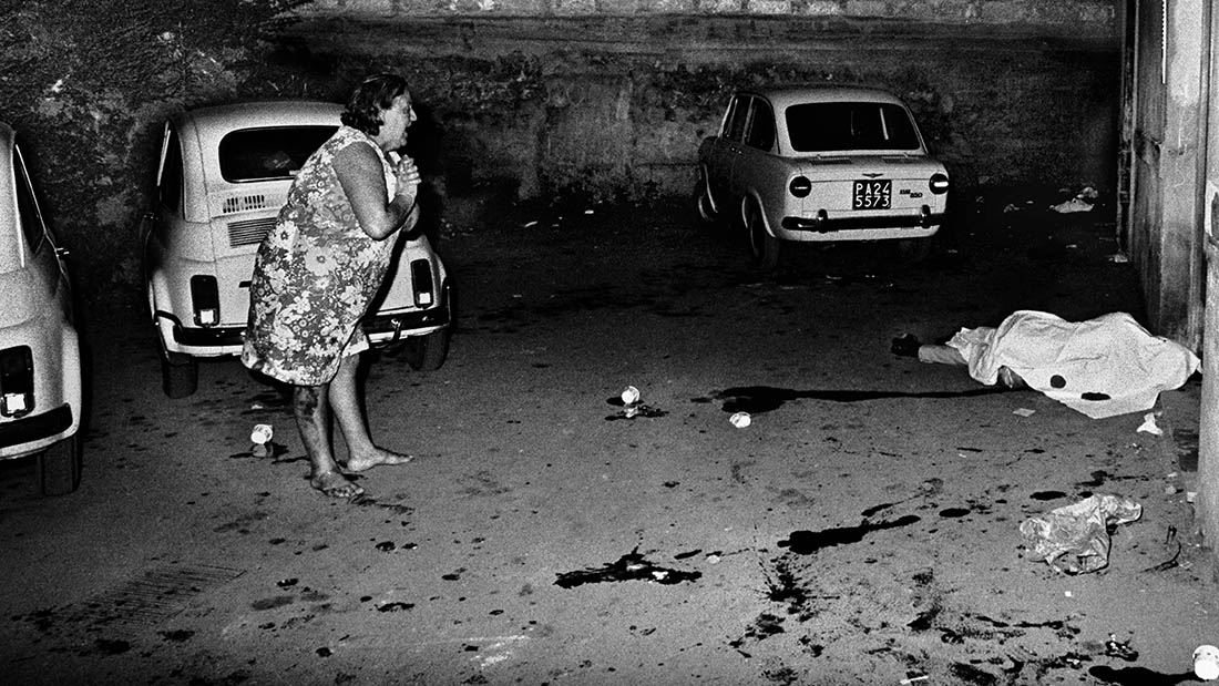 莱提兹娅·巴塔加利亚仍然记得她拍摄的第一具尸体:一名男子躺在西西里乡间一片田野的橄榄树下。这是一幅令人内心不安的形象,细节透露出更多:死者没穿鞋子的左脚,看守尸体的警察逆来顺受的凝视,低垂下来的橄榄树枝叶。她认为这是一名在纷争中被杀的黑手党,在她看来面对死亡,每个人都是平等的。